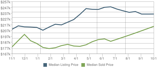 The market, however, is quickly changing as shown by increasing listing prices. By comparing these price trends, you'll have a good idea of where the market is heading. The median listing and sold property prices are calculated based on the market activity each month.